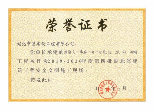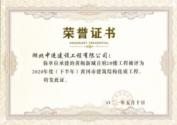 2021年公司项目工程获奖证书